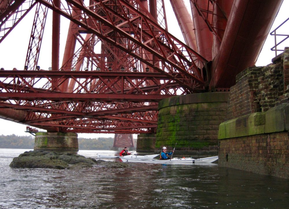 By now the tide had turned so we paddled right out into the middle of the Forth and rode it back under the original Forth Road Bridge and the original Forth Bridge. The tide can be a little faster under the big red girders of the rail bridge and we played in the flowing waters for a while.